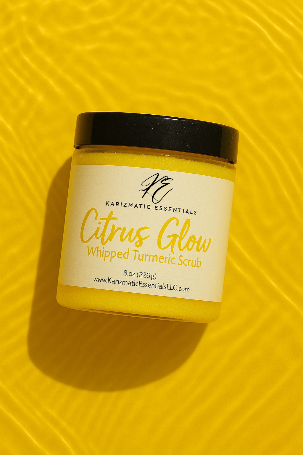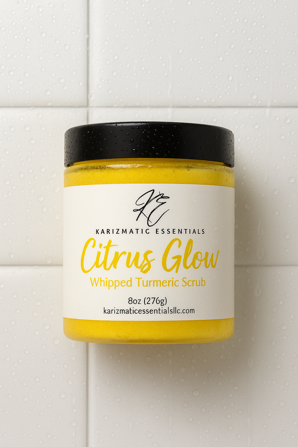 Citrus Glow is an invigorating body scrub that polishes away dull, dry skin to reveal a radiant, healthy glow. Formulated with exfoliating sugar crystals, brightening turmeric, and a revitalizing blend of citrus oils, it buffs and smooths while nourishing with rich butters and hydrating oils. The uplifting citrus aroma awakens the senses, leaving your skin feeling silky soft, refreshed, and glowing from head to toe.