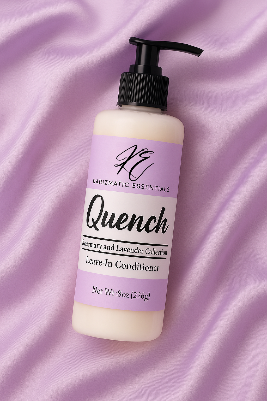 Quench is a creamy, nutrient-rich leave-in conditioner designed to deliver intense hydration, softness, and manageability to every strand. Packed with aloe vera, nourishing butters, and plant-based proteins, it penetrates deeply to restore moisture, smooth the hair cuticle, and reduce frizz without weighing hair down. Perfect for curls, coils, waves, and straight styles alike, Quench keeps hair hydrated, healthy, and beautifully defined between wash days.